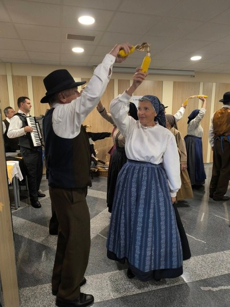 V četrtek, 20.11.2025, smo na kuharski delavnici v okviru projekta InoPrehrana skupaj raziskovali tradicionalne okuse Gorenjske in pripravili Maršalove krvavice z dušenim kislim zeljem ter krompirjem. Pod vodstvom priznanega kuharskega mojstra gospoda Jožeta Oselija smo osvojili številne uporabne tehnike, obenem pa ohranjali dragoceno kulinarično dediščino. Z nami sta bila tudi sodelavca projekta gospod Peter Vogelnik z ženo (Moji štruklji Slovenije), ki sta dodatno obogatila naše druženje s svojim znanjem. Vzdušje je bilo izjemno prijetno, poučno in polno smeha. Hvala tudi članom Društva upokojencev Cerklje za čudovit popoldan in skupno kulinarično ustvarjanje!